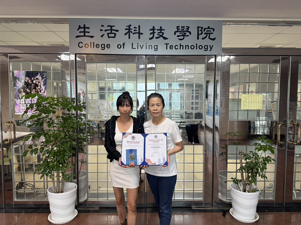 此次參展的四件作品涵蓋文化設計、智慧醫療、智慧農業及高齡友善設計,由師生團隊共同完成,展現多元創新能量與對社會實際需求的關注。美容系專技助理教授黃秀勤指導碩士生林宥薰共同研發的「蓮花摺紙底座結構」,將傳統摺紙藝術結合宗教祭祀用途,透過獨特結構設計,使蓮花座上的祝禱文字與圖案端正排列而不重複,提升莊嚴與美感,最終榮獲銀牌,獲評審高度肯定。