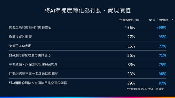 思科 2025《人工智慧準備度指數》調查指出僅66%台灣企業表示在獲利能力、生產力及創新方面均有所提升。
