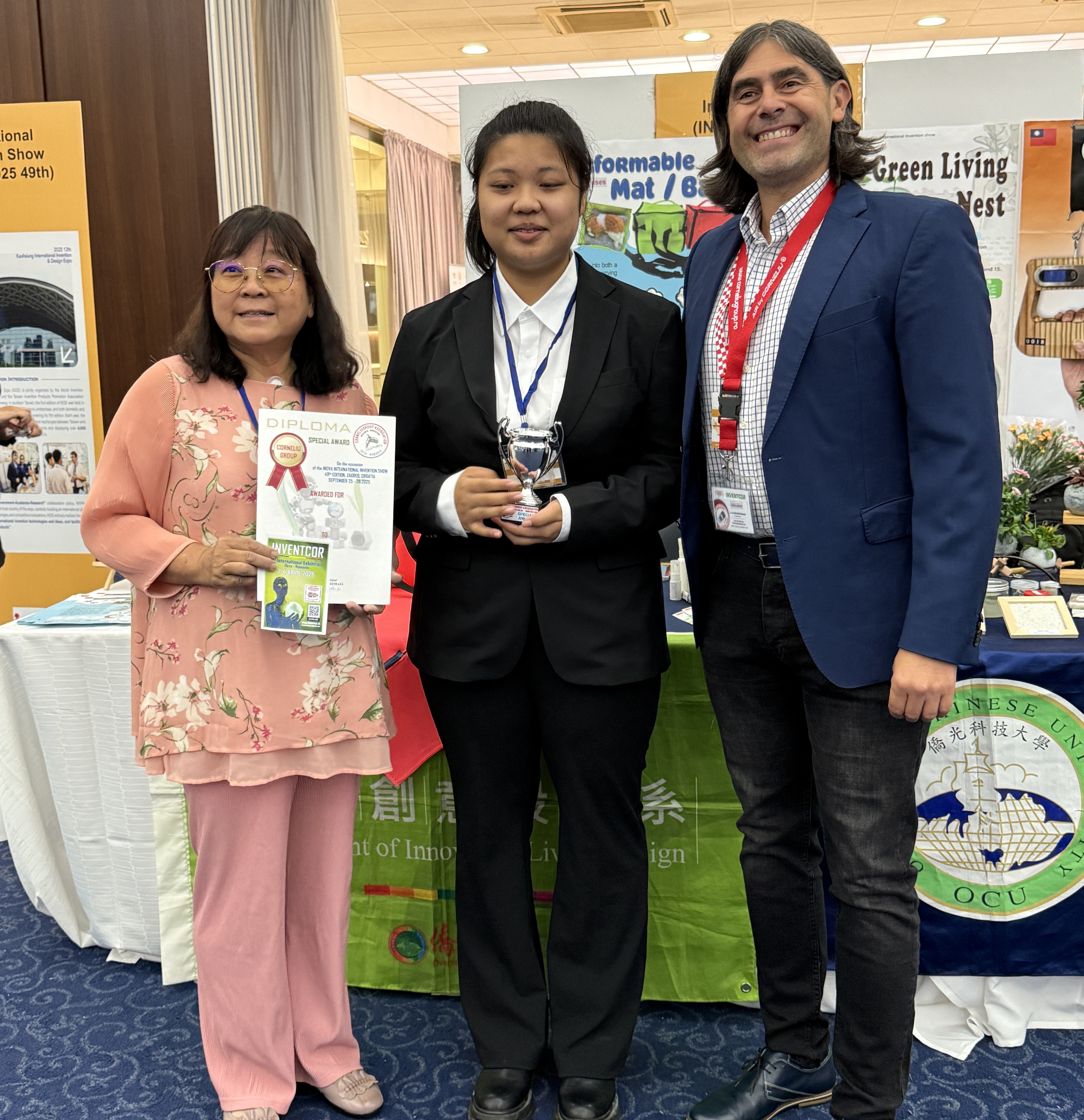 值得一提的是,團隊學生在展會現場全程以英語進行簡報與答詢,面對來自世界各國的評審與觀眾,展現專業自信與流暢口條,獲得一致好評。從前期構思、原型設計到現場展示,學生展現高度自律與團隊合作精神,充分反映僑光科大培養跨文化交流與專業實作能力的教育成果。