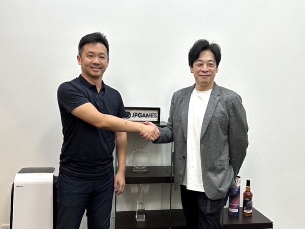 ▲ 智寶國際投資JP UNIVERSE,展開大型遊戲的深度策略性合作。圖左為智寶國際集團董事長鄧橋,圖右為JP GAMES創辦人田畑端。
