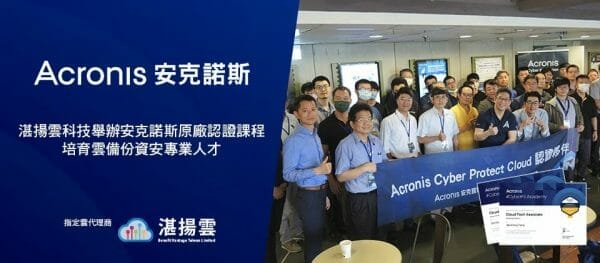 湛揚雲科技資深產品經理何之瀚表示:「疫情加速企業數位轉型的腳步,同時改變了工作的型態及方式,在發生意外狀況時,如何快速應變調整,降低營運損失及保護數位資產,是企業現在最重要的課題。做為安克諾斯雲代理商~湛揚雲科技,這次邀請Acronis亞太區資深技術總監Ron Eo來台親自教授雲備份資安認證課程,就是希望訓練更多雲服務專業人才,協助企業使用Acronis Cyber Protect Cloud,藉由單一服務平台,即可遠端完成資料備份及復原,在任何狀況下,數位作業均可正常營運不受影響,只要企業委託值得信任的安克諾斯認證廠商且提供ACPC服務,即可大大降低企業IT費用並獲得專業廠商的保護。這次的課程將培育30名以上專業人才,期望能擴大更多安克諾斯為企業客戶服務的範圍。」