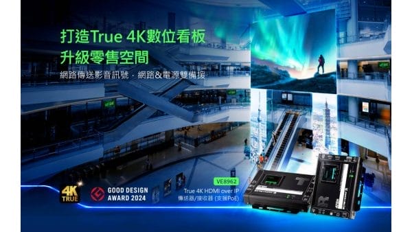 【2025年10月20日,台北訊】全球KVM與AV/IT連接與管理方案領導品牌–宏正自動科技 (ATEN International,6277),正式推出VE8962 True 4K HDMI over IP影音延伸器,專為滿足日益增長的大型高效能數位看板應用需求而設計。VE8962可透過乙太與光纖網路,以超低延遲傳送 真 4K HDMI訊號 (4096×2160 @ 60Hz;4:4:4),確保可靠的長距離 AV over IP 傳輸,並具備網路備援;LAN/光纖故障移轉功能。非常適合購物中心、機場、交通樞紐、多功能體育場、大學校園與展覽館等應用場域。